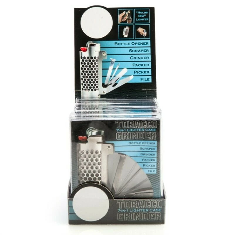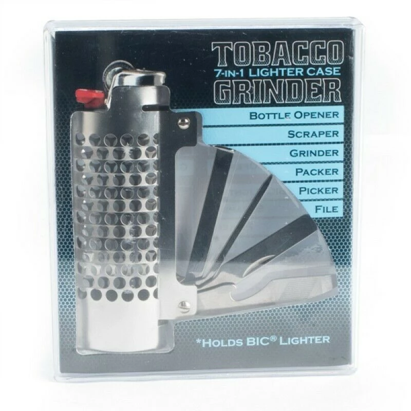 - Features tobacco grinder, bottle opener, scraper, packer, picker and file