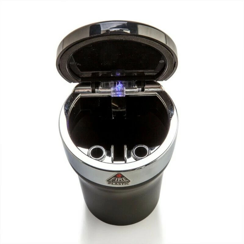- LED lights up when lid opens and keeps butts out of sight when closed