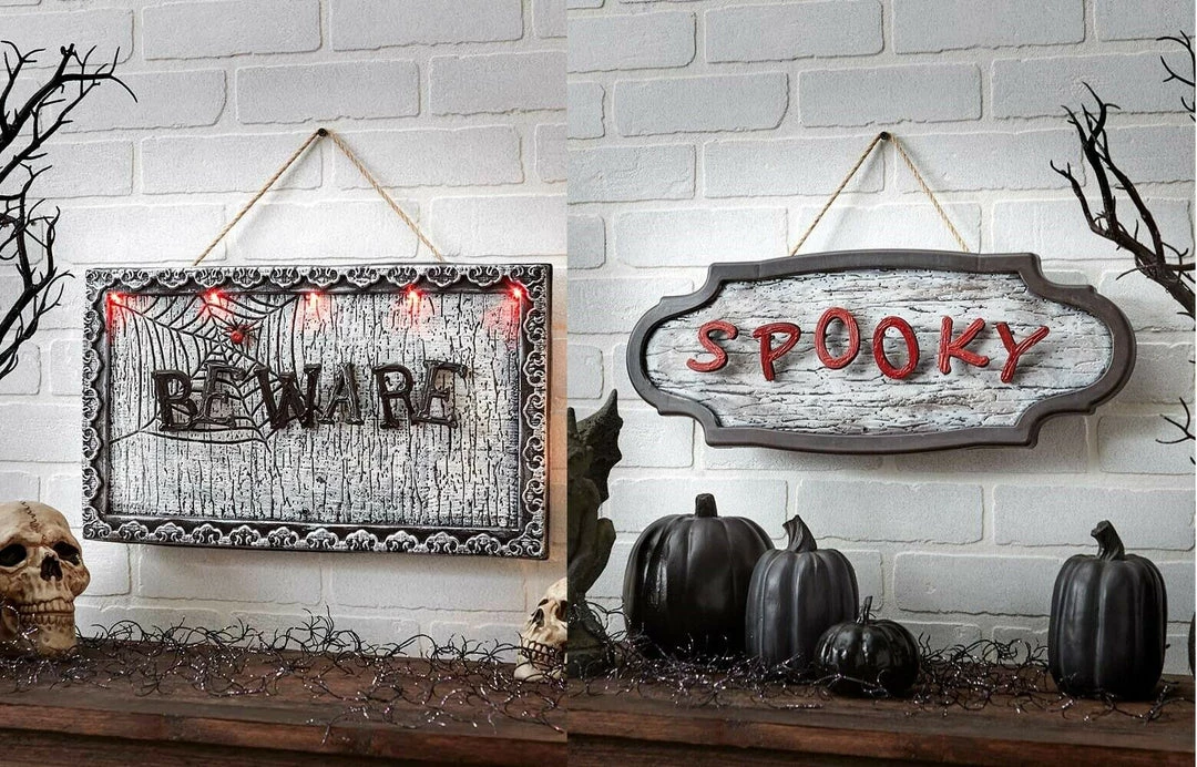 - Give your guests a scare with our animated Halloween “Beware” sign.
