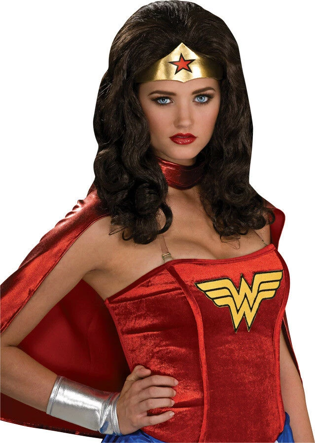 put on a Wonder Woman Wig! This black-brown wig is bursting with body and