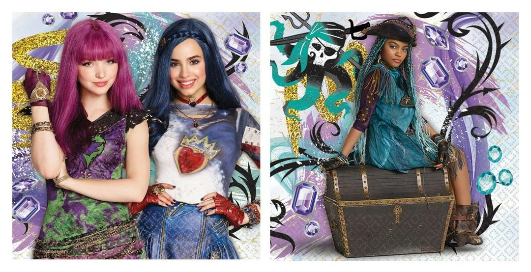 Disney Descendants 2 beverage napkins. 16 2-ply napkins per pack. Folded napkins measure 5 inches X 5 inches. Let these, napkins be a part of your childs next Descendants 2 Birthday Party!