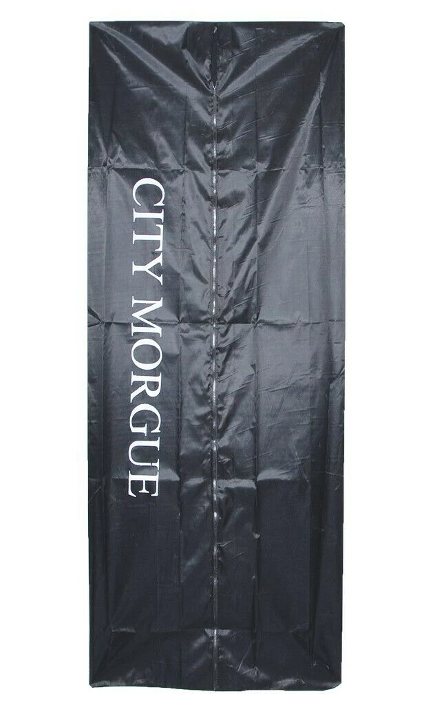 Decorate your haunted scene with this City Morgue Body Bag decoration. This spooky décor will add a morbid touch to your haunted display. Perfect for your haunted scenes, parties, plays and productions. The Body Bag prop by Sunstar features a 6’ body bag in black with City Morgue print along the side in white lettering for an authentic look. Measures approximately measures 72” L x 28’ W.
