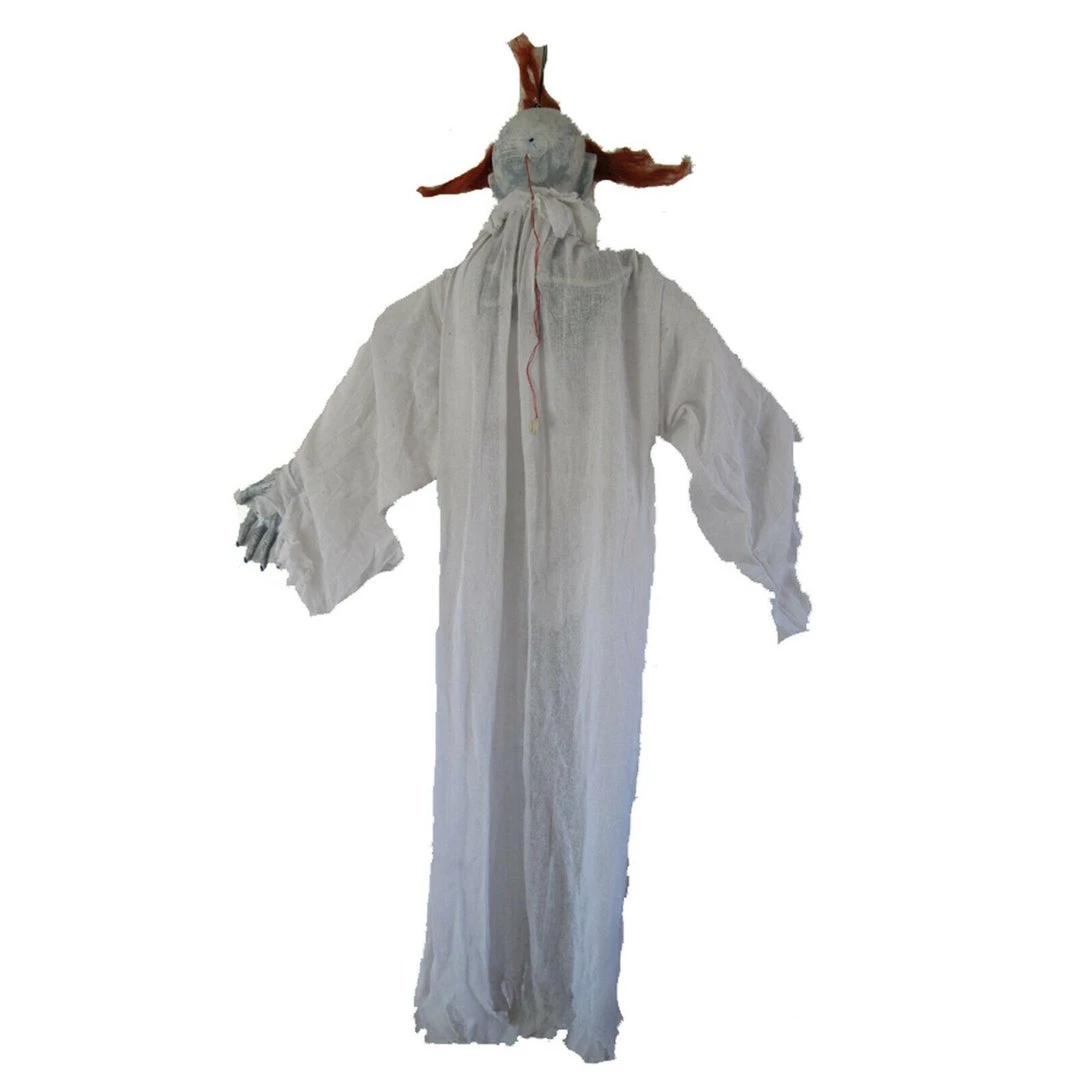 hands attached to posable arms. Can easily be hung for a great eerie look. 60 inches