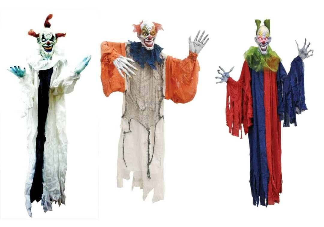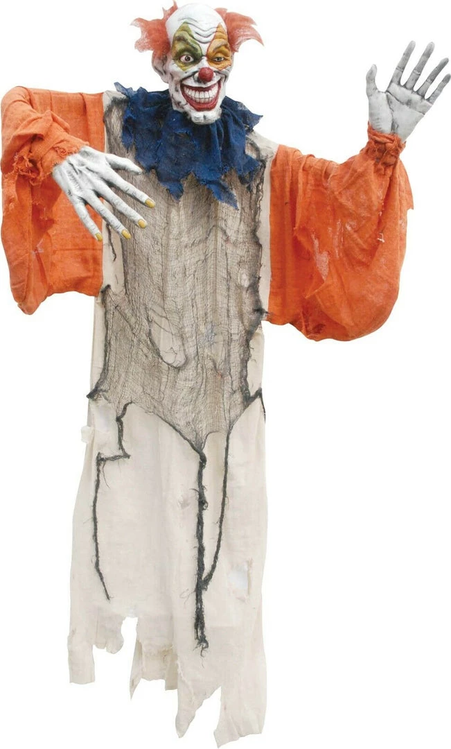 Hard foam evil open mouth clown head with draping free flowing costume. Plastic