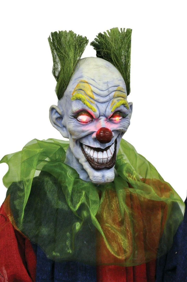 Vinyl evil smiling clown head bust green hair attached light-up LED eyes (requires 3