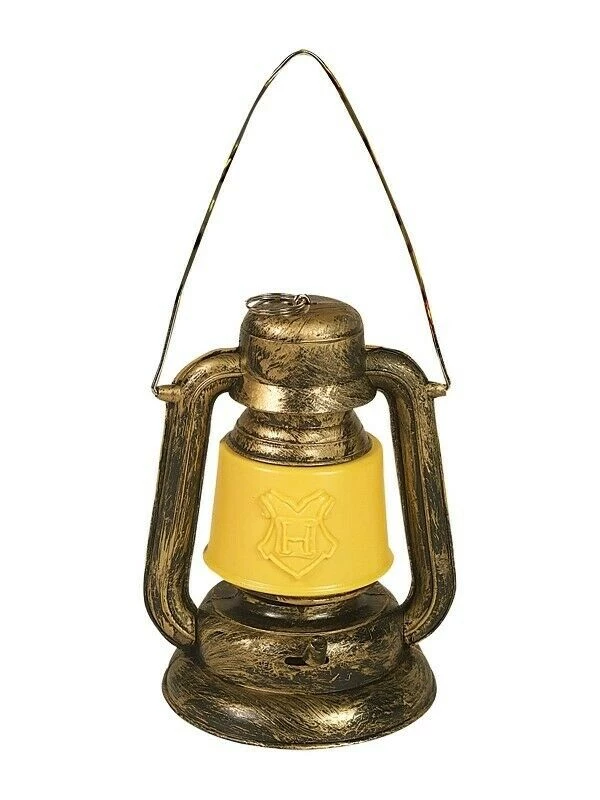 - Working moulded plastic lantern with weathered gold paint look to frame and yellow plastic diffuser with the Hogwarts emblem moulded into it