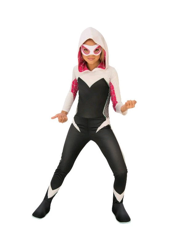 She is Gwen Stacey, a.k.a Ghost Spider, the newest and coolest Disney “Marvel Rising” Character (2019). Gwen was bitten by a radioactive spider and gained spider-like powers. As a founder of a rock band “The Emm-Jays” she gets relief from her conflicted life as a popular performer. With special powers like superhuman endurance, agility, strength, spider-senses and wrist-mounted mechanical web-shooters, she helps those in need like good friend Peter Parker, Spider-man.