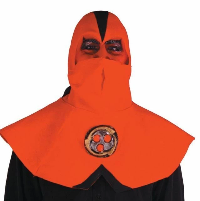 Horrific latex face pieces sewn onto ornate hoods with attached latex Ninja