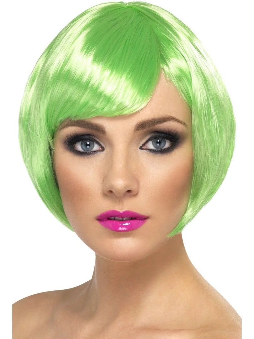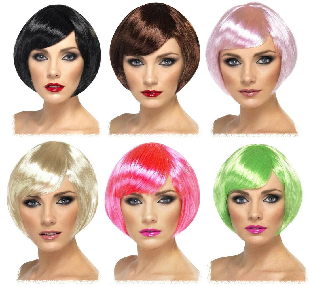 This short bob babe wig comes in many colours and features a fringe. It is quality wig made from synthetic material and can be worn with many different costumes