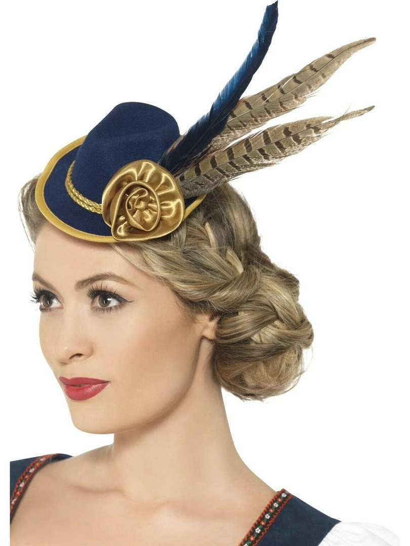 - Authentic Bavarian Oktoberfest Mini Hat, Blue, with Feather