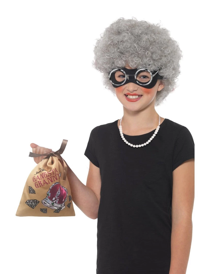 Revel your astonishing past as a jewel thief to your family and complete your Gangsta Granny costume in this awesome granny kit made by Smiffy’s. Inspired by famous British comedian, actor and author David Walliams, this Gangsta Granny costume kit for girls will complete your old lady fancy dress costume perfectly for book week!