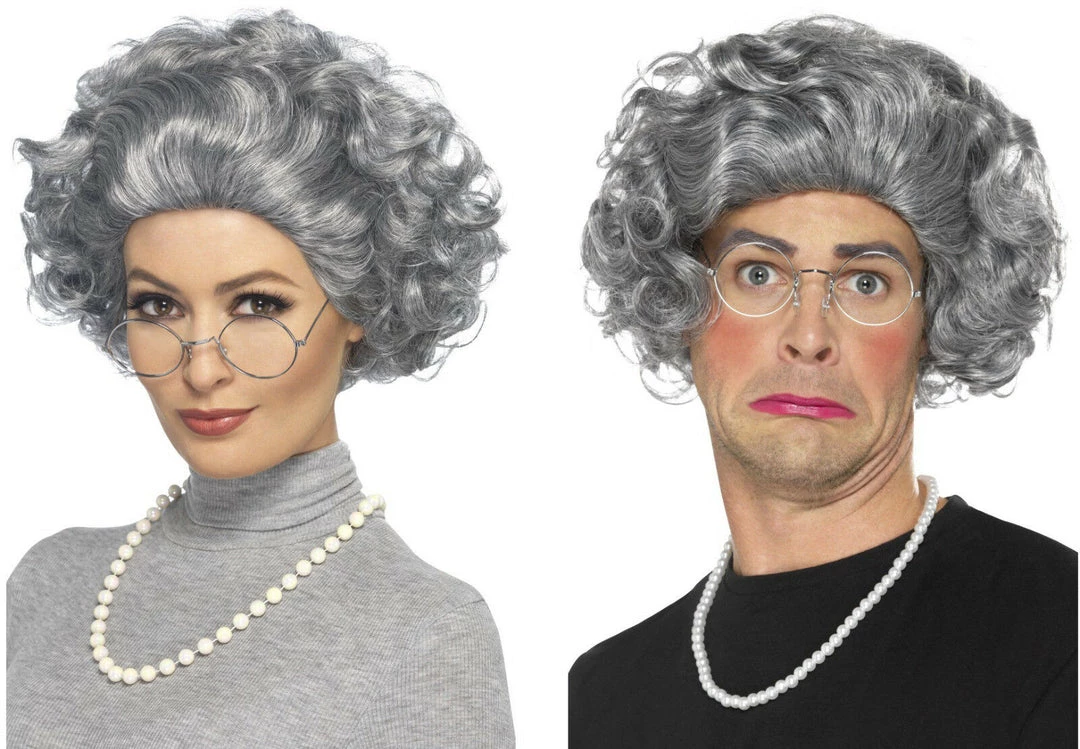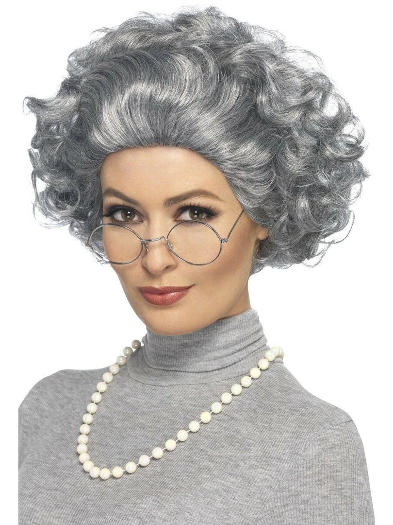 Grow old gracefully with this Old Lady Wig & Glasses costume kitÂ
