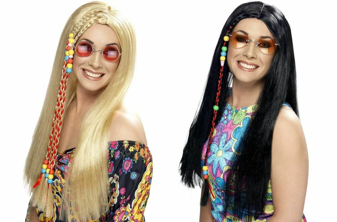 Add some brightness to your costume with this awesome Hippy Party Wig! Long and black with colourful beads attached, this is sure to add more colour to your already colourful hippy outfit!
