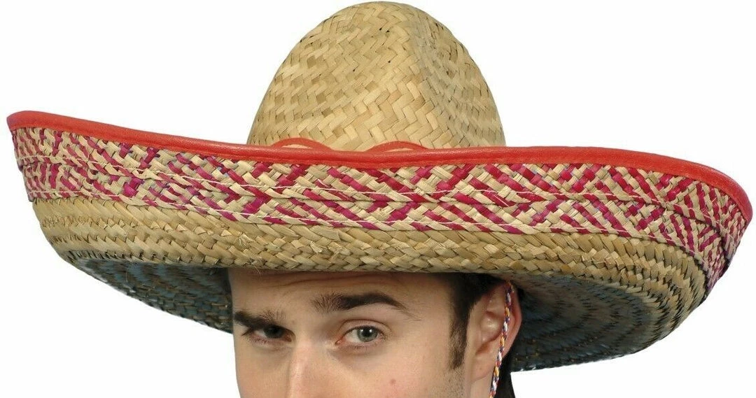 Finish off your Mexican costume in style with a large straw Mexican sombrero hat, Mexican, moustache and fake cigar Perfect costume set for any international Mexican or sports themed costume party or event! Â