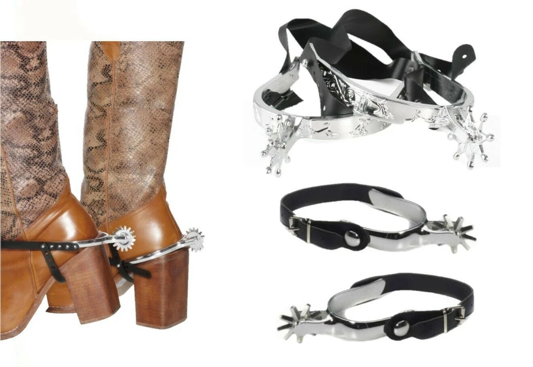 Live the cowboy way of life for your next Cowboys and Indians fancy dress party! These silver cowboy spurs will be the perfect finishing touch to your wild west outfit, especially your cowboy boots!