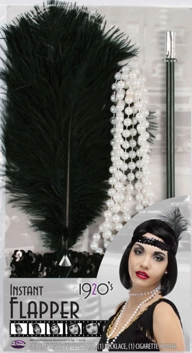 Get the Gatsby look- instantly! Complete with headband, necklace and cigarette holder, this kit is all you need for your 1920’s costume.