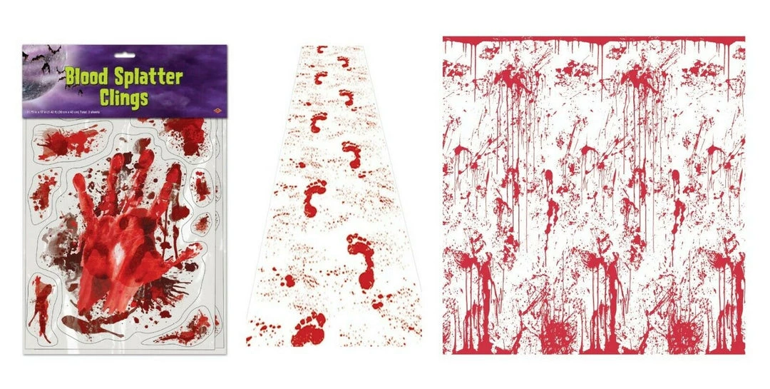 - Includes : 30cm X  43cm |  Blood Splatter Clings | AssortedÂ