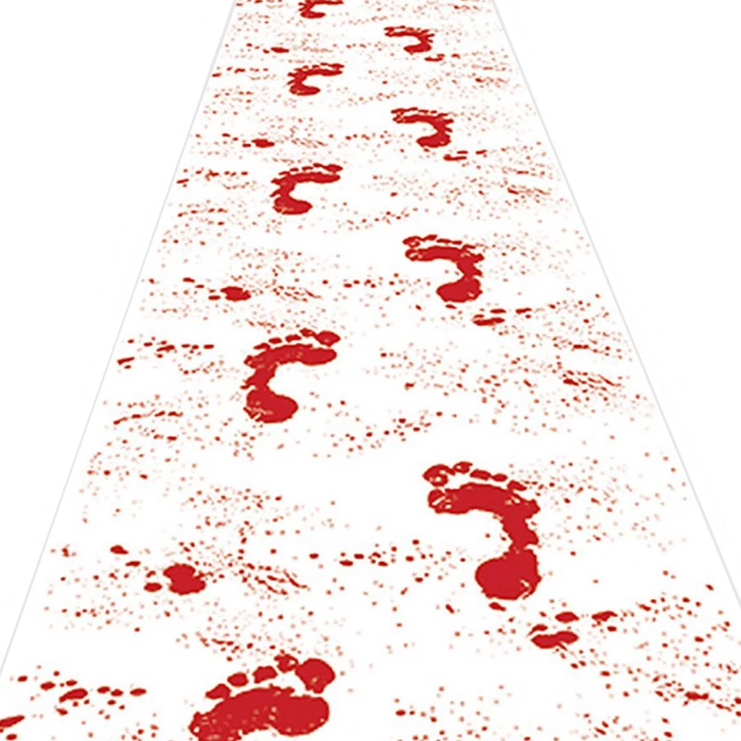 Add an element of horror to your Halloween party decorations with this Bloody Wall Backdrop, blood splatters cling, and bloody foot prints runner. These decorations are made of a thin white plastic material with red paint splatters made to look like blood splatters.