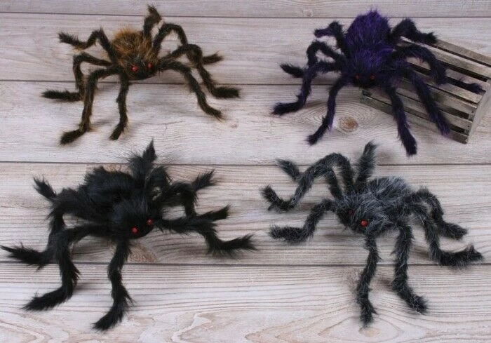 Transform your front doorway into a thrilling place for trick or treat with these creepy fake giant spiders!