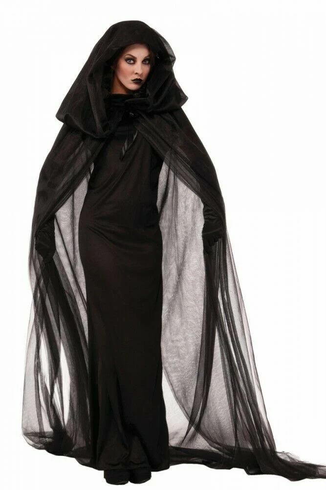Become a dark and evil sorceress in this spooky women’s Halloween costume by Forum Novelties. This women’s spiritual black ghost costume is perfect for your next Halloween fancy dress costume party!