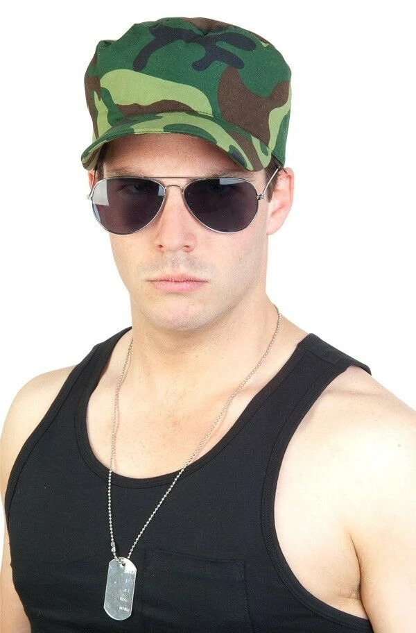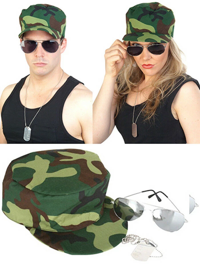 costume party! Each pack contains a camo cap, glasses and a dog tag and are