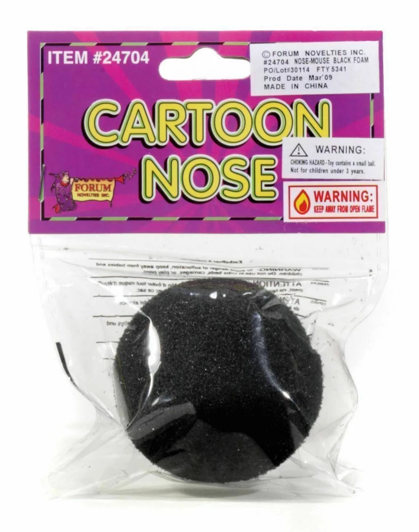 Sniff out some fun in this black foam nose! A great finishing touch for your cartoon mouse, kitty cat, reindeer or other animal costume. One size fits most adults and children. A must-have for your Mickey or Minnie Mouse costume!