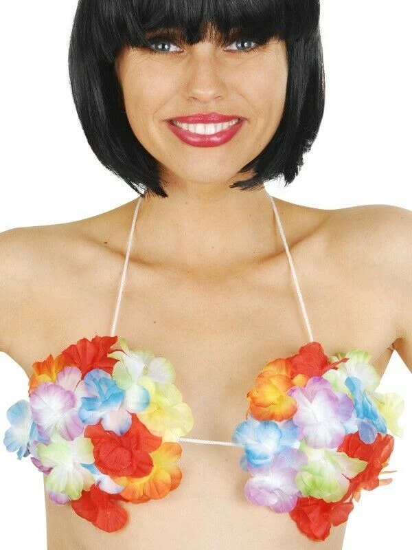 Head to the beautiful beaches of Hawaii and dance the night away when you pair this gorgeous colourful flower bra with your hula skirt costume! This women’s tropical Hawaiian bra adorned with brightly coloured flowers is sure to have you indulging in all things Hawaiian and dancing the Hula dance!