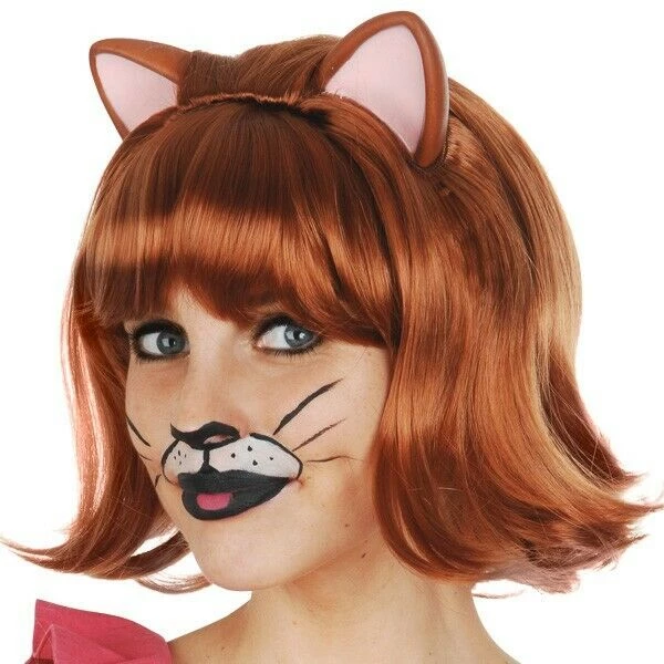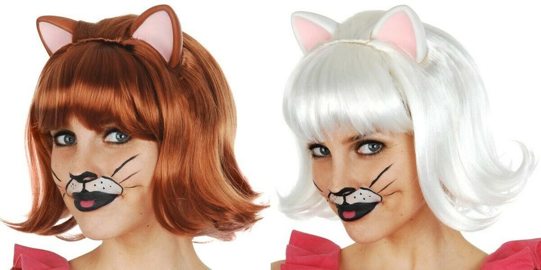 You’ll be looking super cute in this Snowdrop Cat White Wig with Ears and Ginger Cat Auburn with Ears and Fringe Deluxe for your next animal dress up. This wig is the perfect accessory to finish off any cat outfit.
