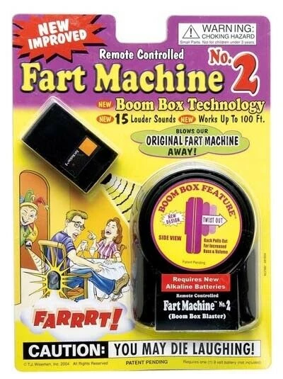 You can now FART wherever and whenever you’d like. This is your chance to impress or gross out your friends and family. This is the new and improved fart machine! The fart machine makes different fart sounds (SOUNDS SO REAL!). Fart Machine has boom box technology. what is this?? Well let’s just say these fart noises can’t sound any more real!
