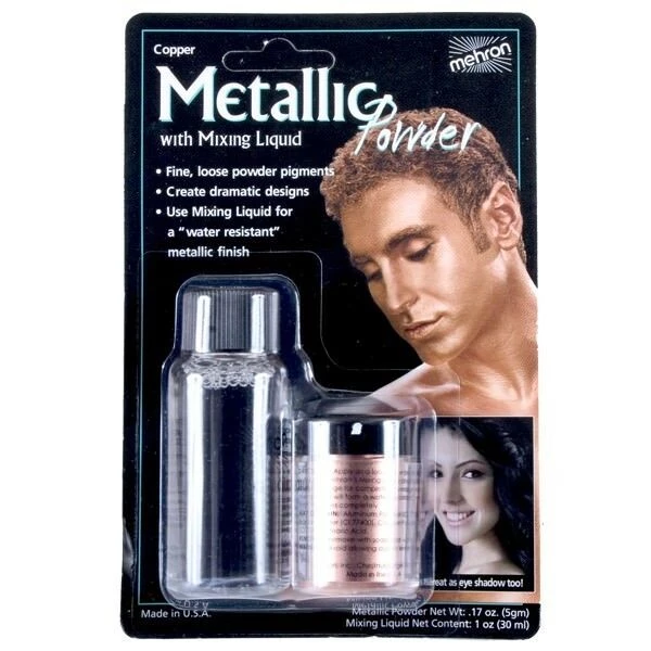 This ultra-fine Metallic Powder Makeup can create dramatic makeup designs and effects. The soft Metallic Powder Makeup is finely crafted, evenly blended and formulated to add dynamic shiny accents to any makeup look.