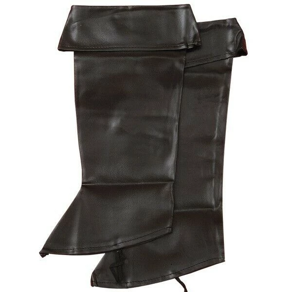 Sail the seven seas with stylish swagger in Pirate Boot Covers for Kids! Made of vinyl, these stylish boot covers reach to mid-calf and have a turned down cuff to add to your debonair pirate ensemble. Elastic straps on the bottom of the boot covers easily slip under your shoes, ensuring they stay in place while you p-arr-ty hard. Complete your pirate costume this Halloween with these vinyl Pirate Boot Covers!