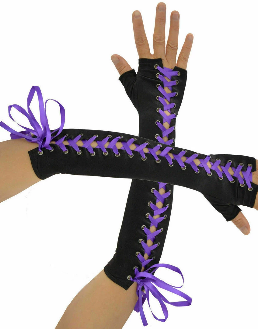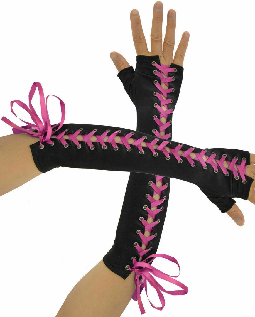 You’ll look & feel fabulous in these dominatrixs gothic ribbon lacing long corset gloves.