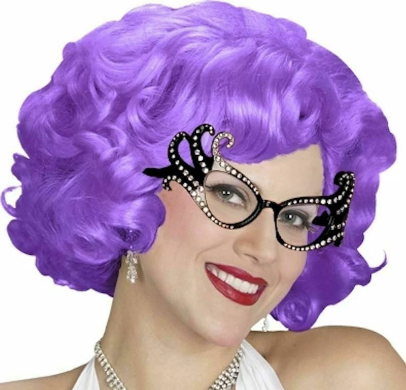 Complete your Dame Edna costume with this purple wig and glasses set. This set will make you the spitting image of our Dame Edna icon, all you need now is to add the dress.