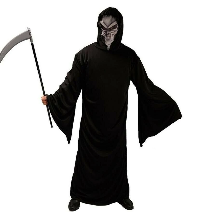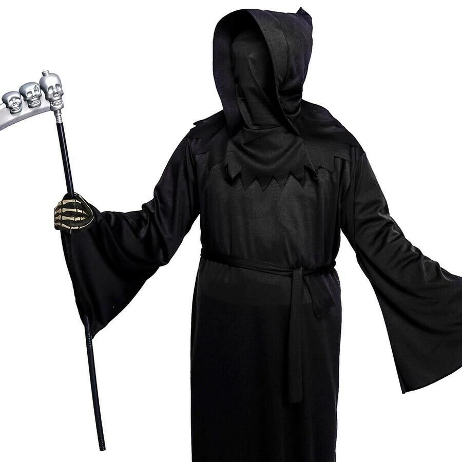 Pack includes: Robe, Hood with Mesh Face Cover, Skeleton Hands