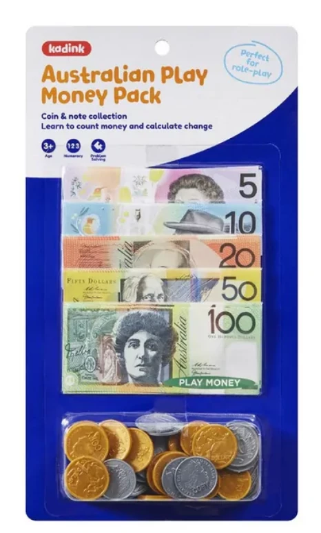 •   Adding the Aussie Play Money to your child’s playtime will help them learn how to sell or shop using the concept of money.